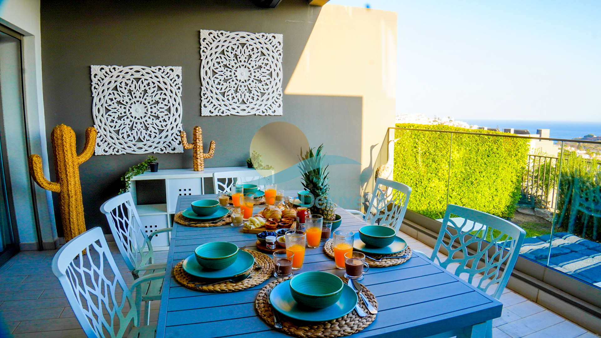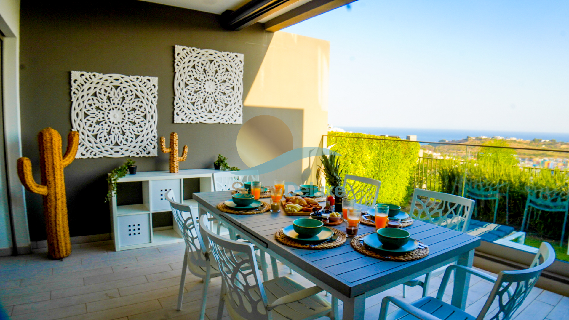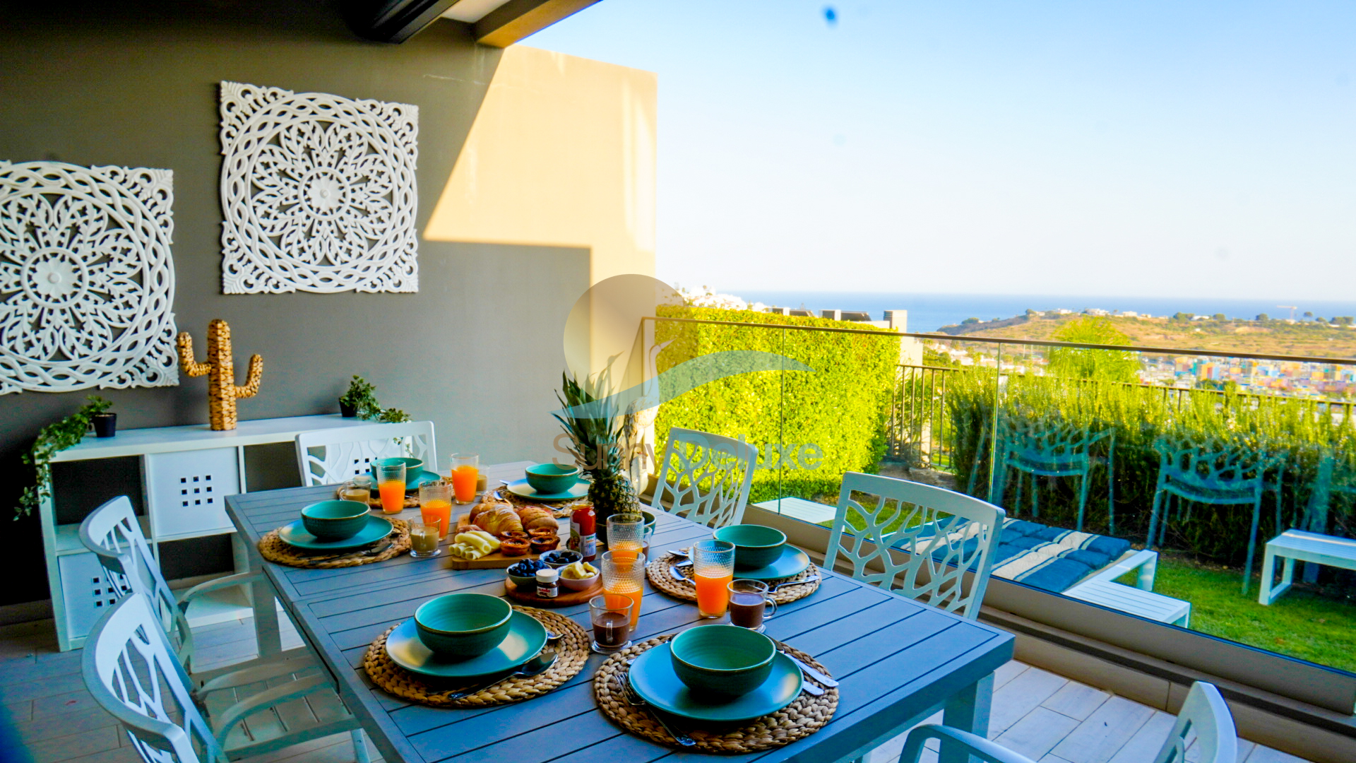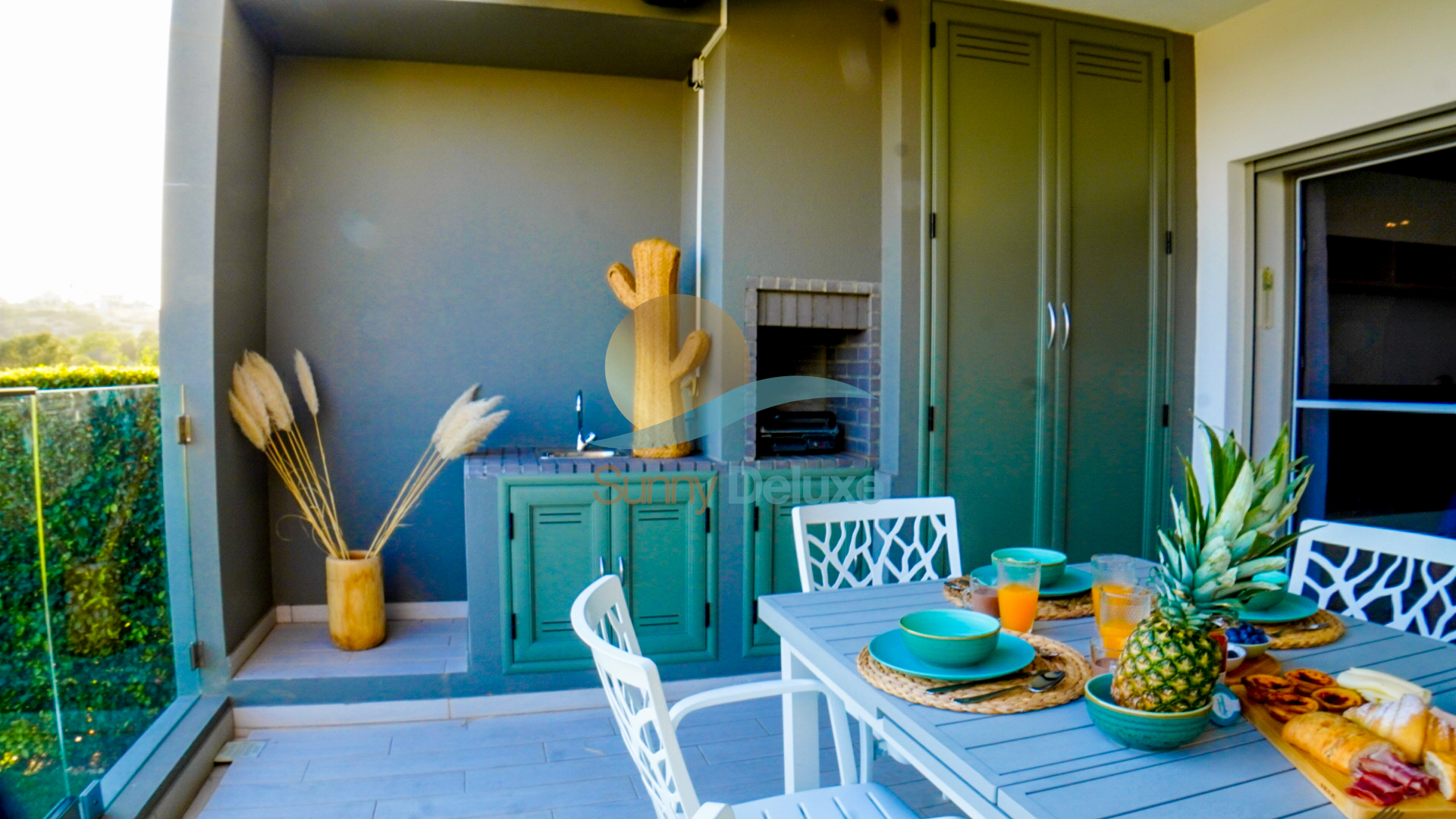 Um amplo e exclusivo terraço, convida-o a relaxar no sofá com o seu cocktail favorito ou a disfrutar de um belo churrasco, a ver o sol beijar o mar.